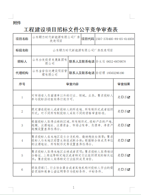 山东颐力时代新能源有限公司厂房改造项目审查表